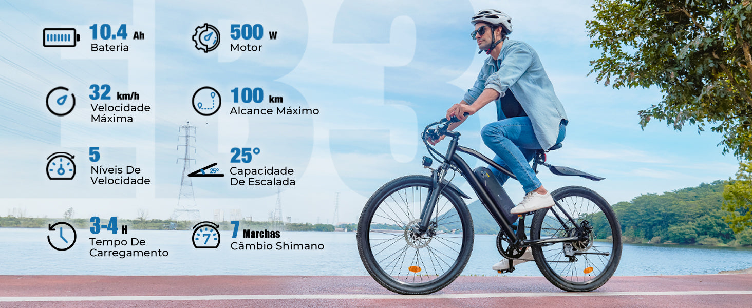 EB3 Bicicleta elétrica com motor de 500 W para adultos